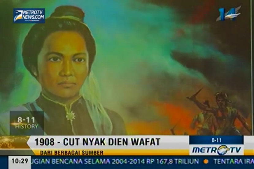 8 Eleven Show: Cut Nyak Dien adalah pahlawan Indonesia asal Aceh Barat yang memimpin perang Aceh tahun 1873. Ia ditangkap lalu diasingkan Belanda di Sumedang, Jabar, dan meninggal pada 6 November 1908, Kamis (6/11/2014).