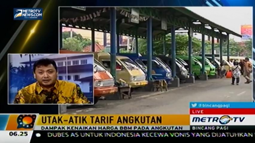 Bincang Pagi kali ini membahas "Utak-Atik Harga BBM". Telah hadir sebagai narasumber Dir. BSTP Kemenhub Sigit Irfansyah, Sekjen Organda Bandung Andriansyah Purba dan Ketua MTI Danang Parikesit, Jumat (3/4/2015).