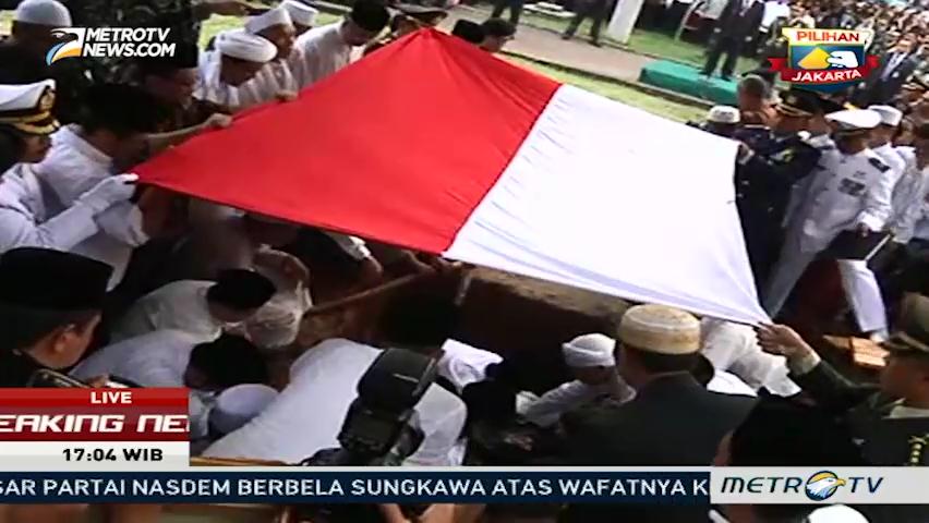 Jenazah K.H. Hasyim Muzadi dimakamkan di Ponpes Al Hikam 2 Depok, Jawa Barat. Lantunan tahlil mengiringi penurunan jenazah mantan Ketum PBNU tersebut. Cek Berita dan Artikel yang lain di Google News