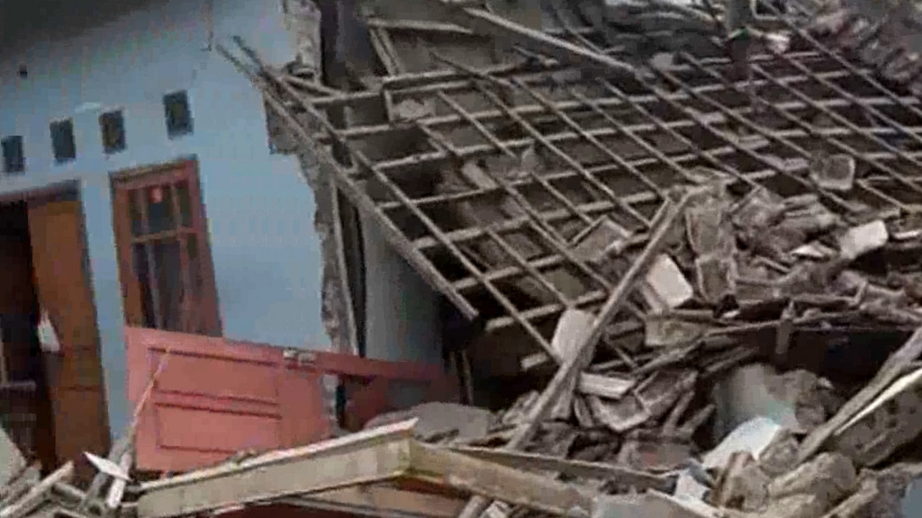 Sementara itu, gempa tersebut juga menyebabkan kerusakan dan menelan korban luka di Cugeng, Kabupaten Cianjur, Jawa Barat. Tampak sejumlah bangunan mengalami kerusakan dan sejumlah orang mengalami luka berat akibat tertimpa bangunan yang runtuh.
