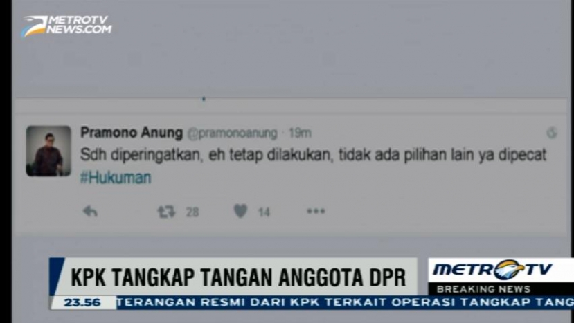 Politisi Senior PDIP Pramono Anung mebuat tweet yang diduga berkaitan dengan tertangkapnya anggota komisi V DPR dari fraksi PDIP dalam OTT KPK, Rabu (13/1/2016).