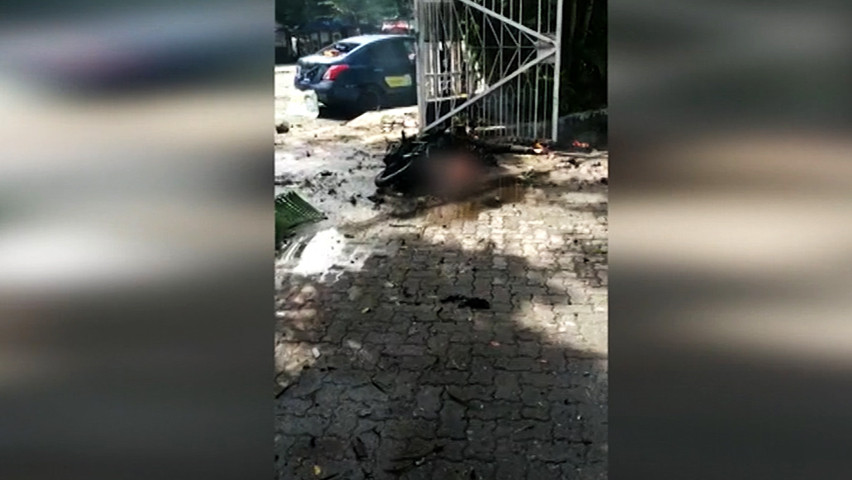 Sebelum terjadi ledakan, dua orang yang menaiki sepeda motor mencoba memasuki gereja. Namun keduanya ditahan oleh penjaga gereja. Hingga akhirnya bom meledak di depan gereja.