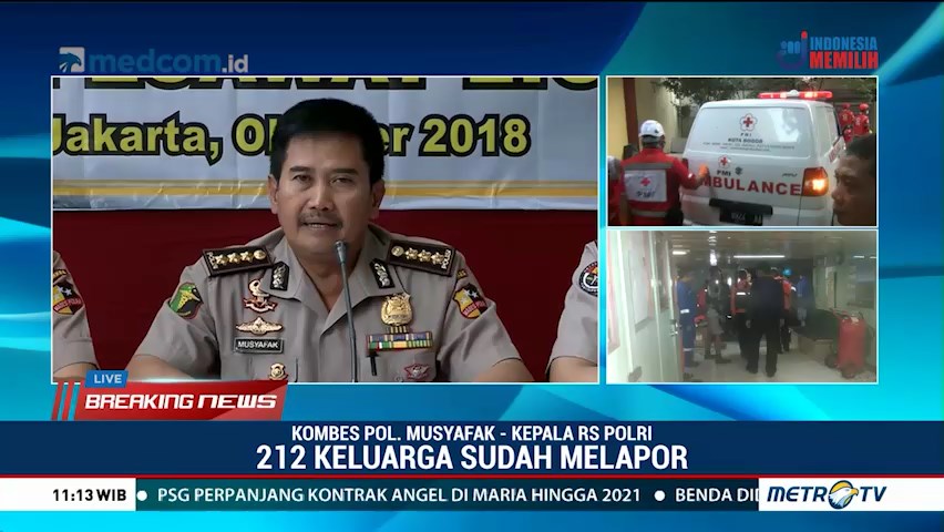 Tim DVI Polri menerima 212 laporan korban penumpang pesawat Lion Air PK-LQP dengan nomor penerbangan JT 610 rute Jakarta-Pangkalpinang. Hasil dari verifikasi tim sudah menerima 189 laporan korban. Dari 189 ini tim berhasil mengambil data antemortem khususnya sampel DNA pada 152 keluarga dan masih ada 37 keluarga yang belum melengkapi sampel DNA.