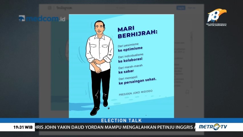 Berbagai strategi terus digencarkan timses dan paslon presiden dan wakil presiden untuk menjadi jawara di Pilpres 2019. Kritik yg dilontarkan ditahan dengan data dan kinerja oleh petahana, hingga adu nyinyir seringkali tak terelakkan. Kapankah sebenarnya adu program sesungguhnya akan dibuka? Bagaimana kedua paslon bermain citra dan membangun narasi untuk meraih simpati? Cek Berita dan Artikel yang lain di Google News