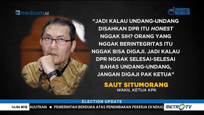 Komisi Pemberantasan Korupsi menggulirkan wacana agar anggota DPR tidak digaji, jika Undang-Undang yang mereka buat tidak rampung. Wacana ini ditujukan untuk membentuk anggota DPR yang berintegritas. Cek Berita dan Artikel yang lain di Google News