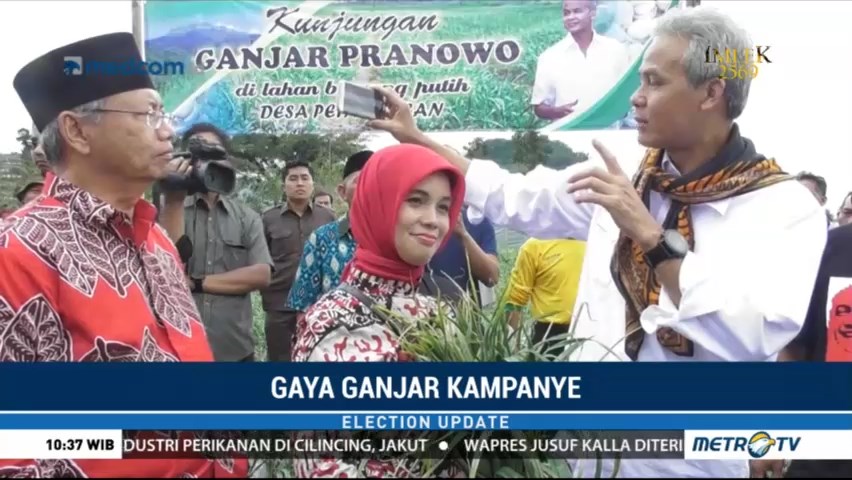 Calon Gubernur Jawa Tengah Ganjar Pranowo bergaya seperti reporter saat melaporkan keluhan para petani bawang di Desa Petarangan, Temanggung, Jawa Tengah. Laporan Ganjar tersebut dilakukan secara live melalui media sosial. Cek Berita dan Artikel yang lain di Google News