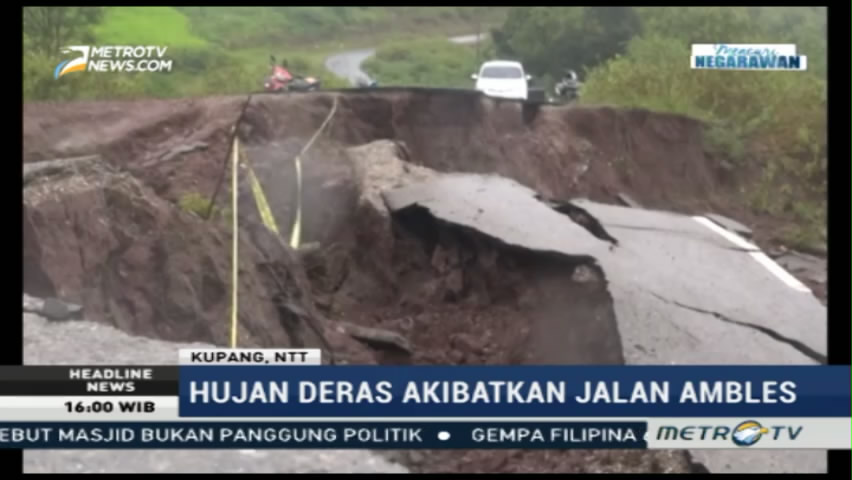 Hujan deras membuat jalan penghubung dua kecamatan dan puluhan desa di Kabupaten Kupang, NTT ambles. Jalan ambles disebabkan karena tidak adanya tanggul dan buruknya sistem saluran air. Cek Berita dan Artikel yang lain di Google News
