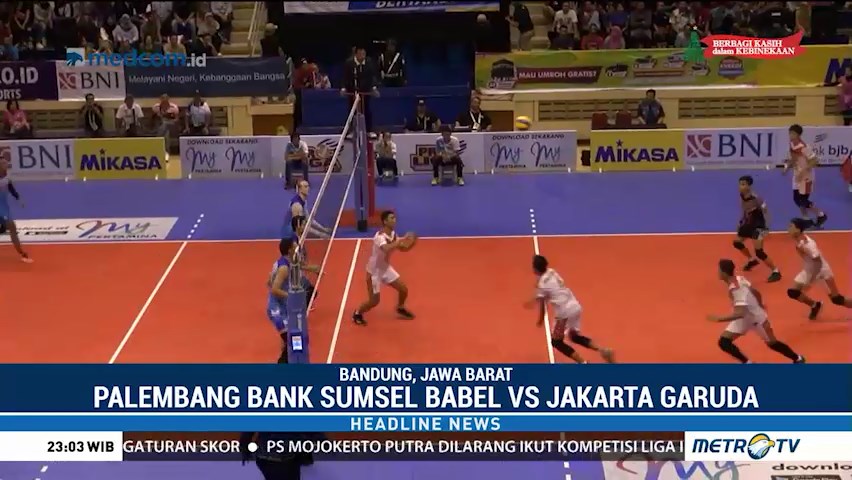 Tim voli putra Palembang Bank Sumsel Babel menang telak 3-0 atas tim Jakarta Garuda di hari kedua lanjutan Proliga 2019 putaran pertama seri Bandung. Cek Berita dan Artikel yang lain di Google News