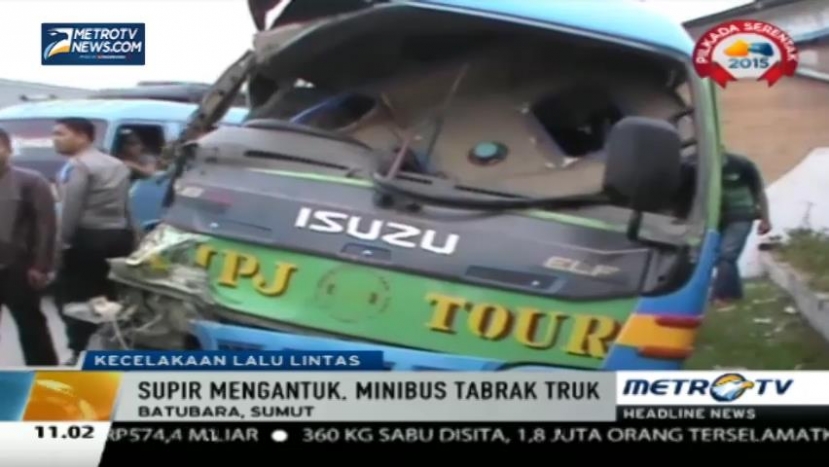 Diduga sopir mengantuk, sebuah minibus menabrak truk di Jalan Lintas Sumatra, Batubara, Sumatera Utara. Sedikitnya 10 orang terluka dalam tabrakan ini, Rabu (15/7/2015). Cek Berita dan Artikel yang lain di Google News