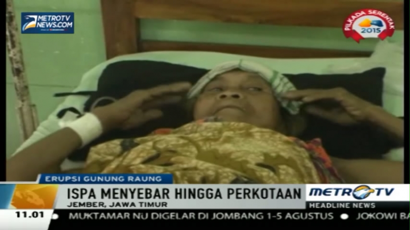 Paparan abu vulkanis Gunung Raung berdampak pada kesehatan warga, dua minggu terakhir, Dinas Kesehatan Jember mencatat jumlah penderita infeksi pernafasan akut dan penyakit mata meningkat 25 persen di Jember, Sabtu (25/7/2015). Cek Berita dan Artikel yang lain di Google News