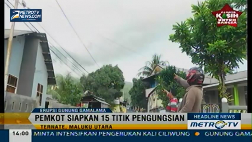 Gunung Api Gamalama di Ternate, Maluku Utara terus menunjukan aktivitas vulkanik, kepulan asap putih serta debu terlihat setinggi 500 meter. Meski terus diguyur abu vulkanik, ribuan warga kota Ternate yang berada di kaki gunung belum diungsikan dengan alasan situasi belum membahayakan, Minggu (21/12/2014).
