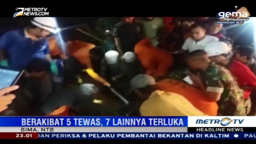 Sebanyak lima tewas dan tujuh terluka parah akibat tertimbun reruntuhan jembatan di Lombok Timur, Nusa Tenggara Barat. Hingga kini, penyebab ambruknya jembatan masih dalam penyelidikan, namun pada saat kejadian hujan sedang berlanjut, Selasa (14/6/2016).