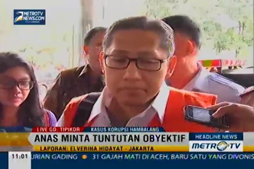 Headline News, Kamis (11/9/2014): Mantan Ketua Umum Partai Demokrat, Anas Urbaningrum, siap dituntut hari ini dalam sidang dugaan gratifikasi dan pencucian uang proyek hambalang di Pengadilan Tipikor Jakarta. Anas meminta agar tuntutan jaksa obyektif dan sesuai fakta persidangan.