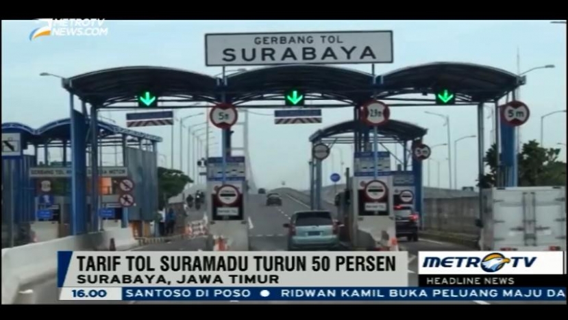 Pemerintah akan menurunkan tarif bagi kendaraan yang melintas di Tol Suramadu, Jawa Timur mencapai 50 persen. Tarif baru akan berlaku mulai dari 2 Maret 2016. Cek Berita dan Artikel yang lain di Google News