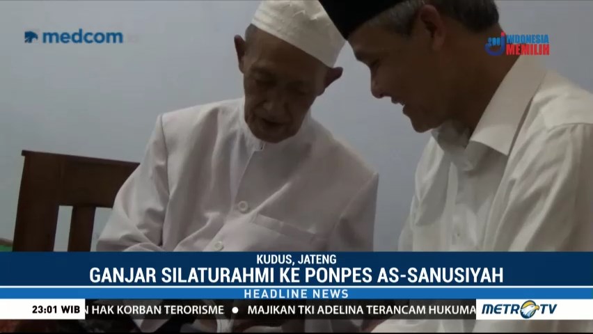 Calon gubernur Jawa Tengah Ganjar Pranowo-Taj Yasin mengunjungi Kabupaten Kudus, Jawa Tengah, untuk bersilaturahmi ke sejumlah pondok pesantren, salah satunya Pondok Pesantren As-Sanusiyah Jekulo, Kudus, Tengah.