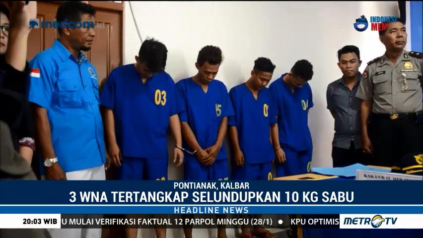 Badan Narkotika Nasional Provinsi Kalimantan Barat meringkus tiga orang warga negara Malaysia di kawasan Kabupaten Kubu Raya. Ketiganya ditangkap karena terbukti membawa 10 kg narkotika jenis sabu. Cek Berita dan Artikel yang lain di Google News