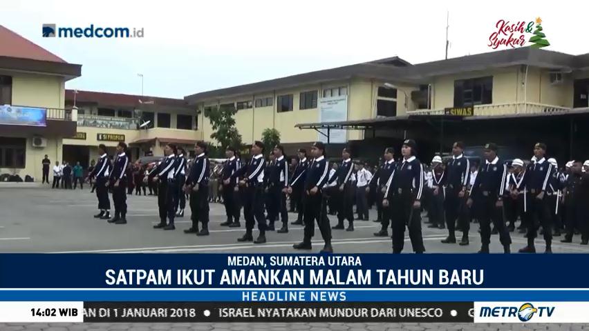 Seluruh personel satpam menggelar apel pasukan di halaman Mapolrestabes Medan, Sumatera Utara. Sekitar 1.600 personel satpam akan dikerahkan untuk mengamankan objek vital di malam akhir tahun. Cek Berita dan Artikel yang lain di Google News