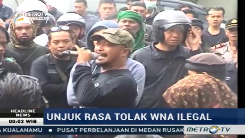 Dua kelompok ormas di Sukabumi, Jawa Barat berunjuk rasa menuntut pihak imigrasi menindak tegas tenaga kerja asing ilegal. Pendemo meminta aparat penegak hukum merazia pabrik yang memperkerjakan pekerja asing ilegal.