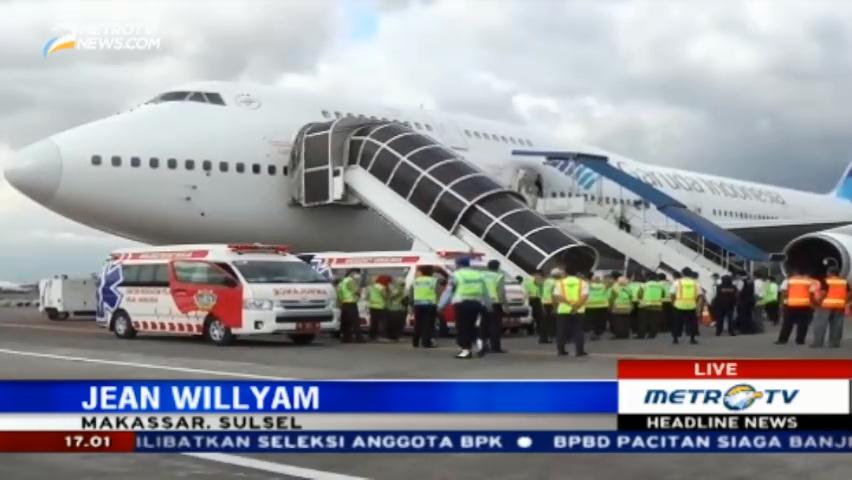 Setelah sempat tertunda selama hampir enam jam, jemaah haji kloter I embarkasi Makassar telah tiba di Indonesia.