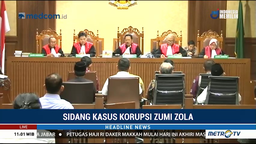 Sidang kasus korupsi Zumi Zola kembali dilanjutkan di Pengadilan Tipikor Jakarta. Zumi Zola terjerat dugaan suap uang ketok palu bagi DPRD Jambi dan kasus penerimaan gratifikasi. Sidang kali ini menghadirkan delapan saksi dari unsur PNS dan anggota DPRD Jambi Fraksi Golkar. Sidang akan mendalami aliran uang suap ketok palu yang mengalir ke DPRD Jambi. Cek Berita dan Artikel yang lain di Google News