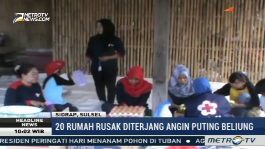 Tim relawan BPBD Sidrap, Sulawesi Selatan, mulai mendirikan tenda di lokasi bencana puting beliung yang merusak 20 rumah serta menewaskan seorang warga.