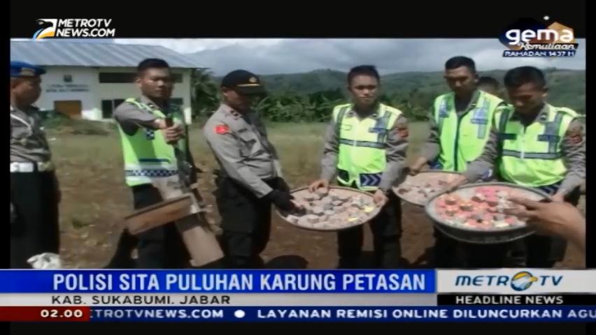 Tim Polres Sukabumi, Jawa Barat, merazia dua kampung pembuat petasan. Dari razia ini, petugas menyita puluhan karung petasan, bahan setengah jadi, dan alat pembuat petasan, Rabu (8/6/2016).