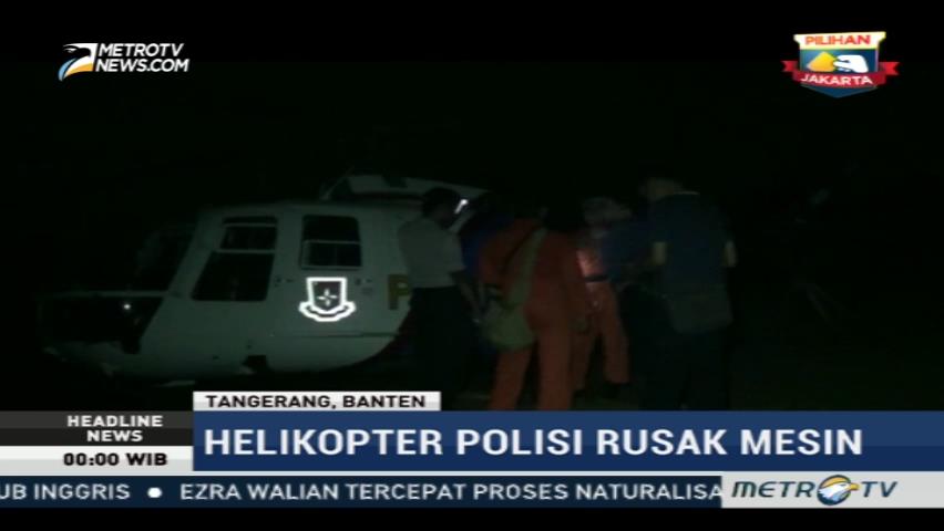 Helikopter milik polisi udara mendarat darurat di perkebunan warga di Kawasan Sindang Jaya, Tangerang, Banten. Helikopter yang ditumpangi empat anggota polisi udara ini mengalami kerusakan mesin saat tengah melakukan patroli udara dari Lampung menuju Jakarta. Cek Berita dan Artikel yang lain di Google News