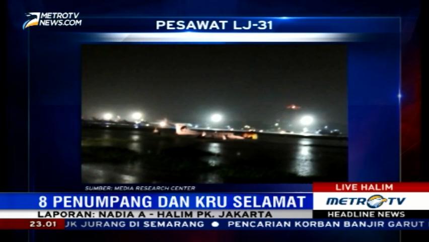 Sebuah pesawat jenis LJ31 merek National Air Charter tergelincir di landasan pacu Bandara Halim Perdanakusuma. Pesawat dengan misi medical evacuation ini membawa delapan penumpang yang terdiri dari 3 kru, satu pasien, dua tim medis, dan dua pendamping.