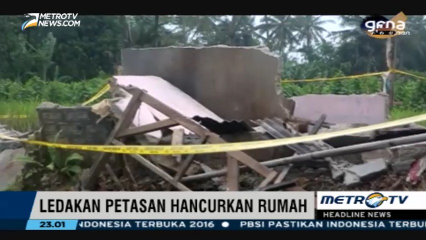 Sebuah rumah hancur akibat petasan yang tengah diproduksi meledak. Dua orang pekerja mengalami luka bakar, Minggu (5/6/2016). Cek Berita dan Artikel yang lain di Google News