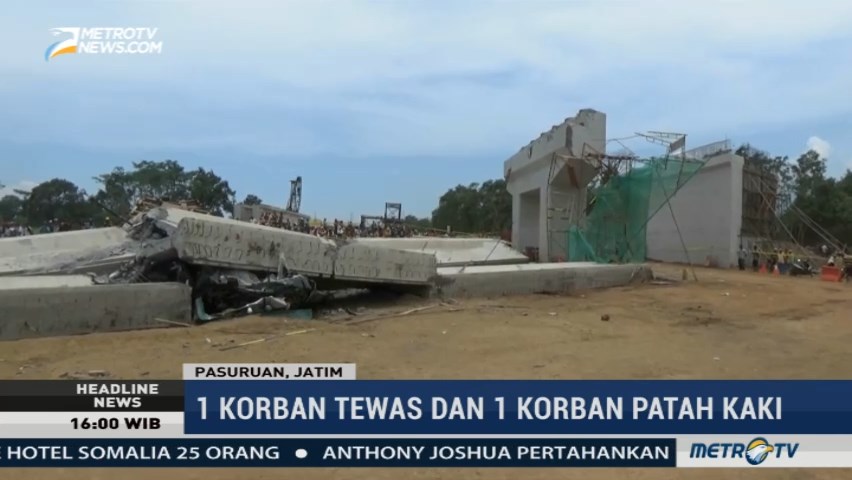 Jembatan proyek tol Pasuruan-Probolinggo ambruk menewaskan satu pekerja dan satu lainnya terluka. Belum diketahui secara pasti penyebab ambruknya jembatan tersebut, namun dugaan sementara karena beton bergeser saat melakukan pemasangan.