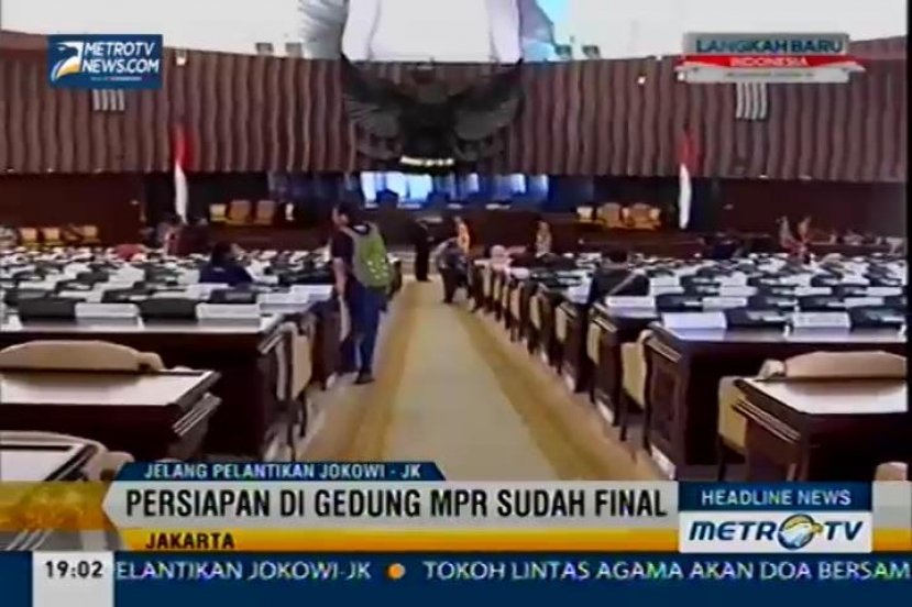 Headline News: Sebanyak 685 Anggota MPR dipastikan hadir dalam acara pelantikan Presiden dan Wakil Presiden terpilih, Joko Widodo dan Jusuf Kalla pada Senin 20 Oktober mendatang. Total jumlah tamu undangan yang akan hadir sekitar 1200 orang. Untuk acara kenegaraan ini disiapkan dana sebesar Rp 1 Miliar, Jumat (17/10/2014).