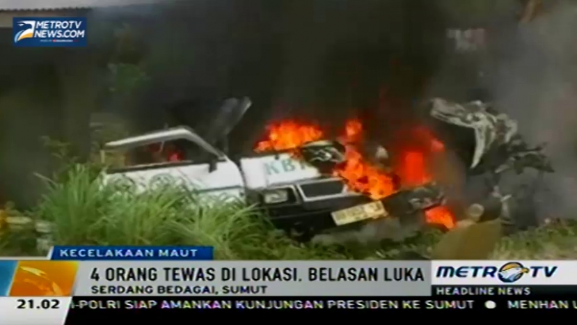 Metrotvnews.com: Tabrakan antara bus dan mini bus terjadi di Jalan Lintas Sumatra di Sei Rampah, Serdang Bedagai (Sergai), Sumatera Utara. Empat orang tewas dan juga puluhan orang terluka dalam kecelakaan ini, Senin (26/1/2015).