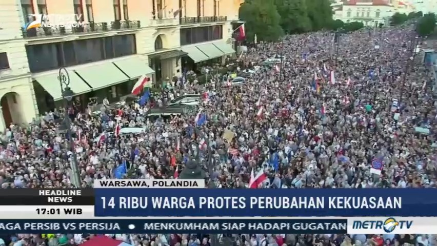 Sekitar 14.000 orang di Warsawa, Polandia turun ke jalan. Massa berdemo atas kendali partai penguasa yang berupaya untuk menata ulang semua tingkat pengadilan di negara tersebut. Cek Berita dan Artikel yang lain di Google News