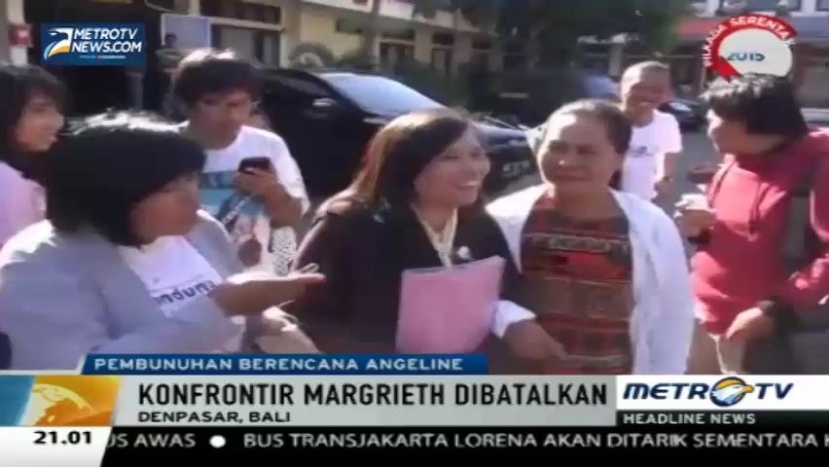 Rencana mengonfrontir Margriet, Agus dan saksi kasus pembunuhan Angeline terpaksa batal. Margriet menolak dikonfrontir tanpa didampingi kuasa hukum, Sabtu (4/7/2015). Cek Berita dan Artikel yang lain di Google News