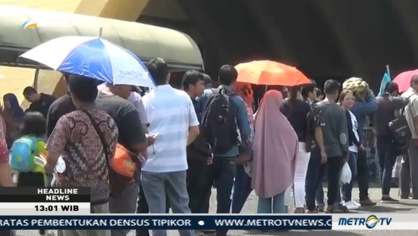 Ratusan warga memadati stan penyerahan berkas perekaman ktp-el di kawasan Taman Mini Indonesia Indah, Jakarta Timur. Kemendagri menggelar perekaman dan pencetakan ktp-el untuk membantu warga yang masih belum memiliki ktp-el.