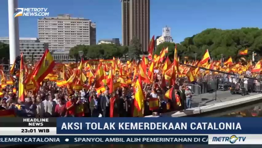 Deklarasi kemerdekaan yang dilakukan Parlemen Catalonia ditolak banyak pihak. Para penentang kemerdekaan Catalonia menggelar unjuk rasa di Madrid. Cek Berita dan Artikel yang lain di Google News