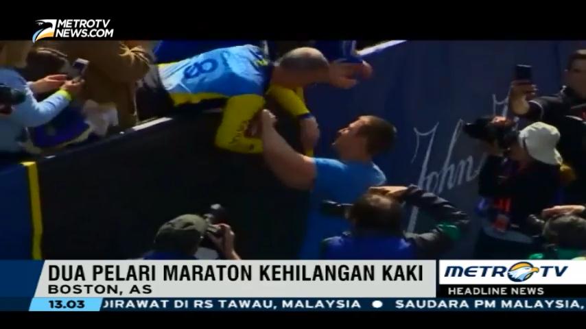 Trauma tak menghalangi dua korban selamat bom maraton di Boston, AS, pada tahun 2013 lalu untuk kembali berkompetisi. Meski kehilangan salah satu kakinya, keduanya berhasil mencapai garis finish, Selasa (19/4/2016).