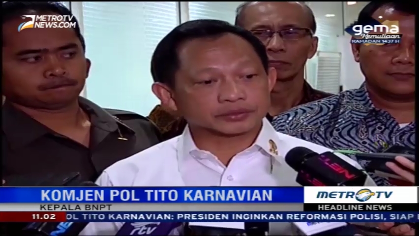 Komjen Tito Karnavian menanggapi penunjukkan dirinya sebagai calon tunggal kapolri oleh Presiden Joko Widodo dan siap menjalankan tugas, Kamis (16/6/2016). Cek Berita dan Artikel yang lain di Google News