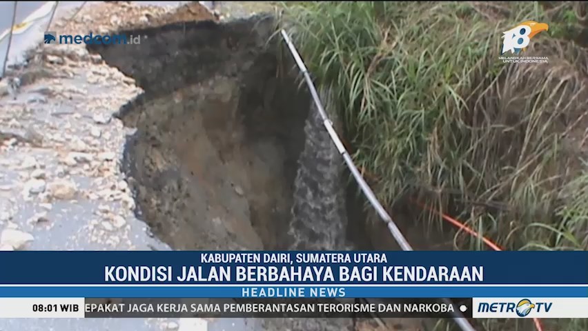 Curah hujan tinggi menyebabkan separuh badan jalan nasional di Kabupaten Dairi, Sumatera Utara, amblas ke dalam jurang. Padahal jalur ini merupakan jalan nasional penghubung antara empat Kabupaten di Sumut. Akibatnya badan jalan hanya bisa dilalui kendaraan dari satu arah. Cek Berita dan Artikel yang lain di Google News