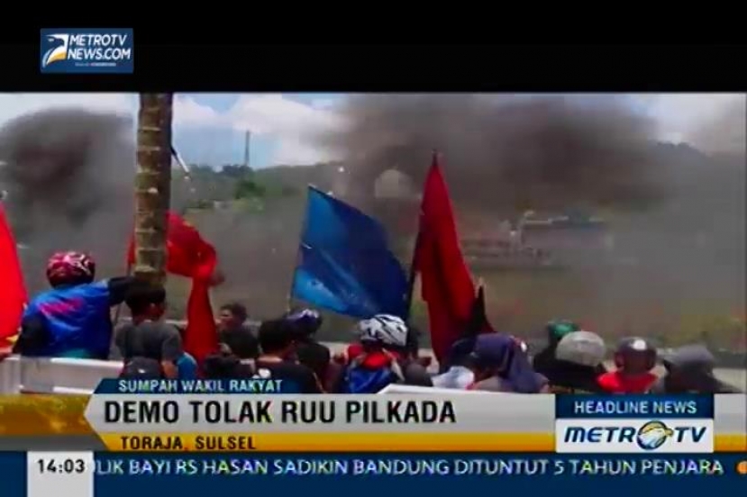 Headline News: Sejumlah organisasi kepemudaaan di Tana Toraja menggelar unjuk rasa terkait disahkannya pemilihan Kepala Daerah melalui DPRD. Karena menurut mereka, Kepala Daerah dari Pilkada melalui DPRD akan tersandera dengan kepentingan partai politik pengusung.