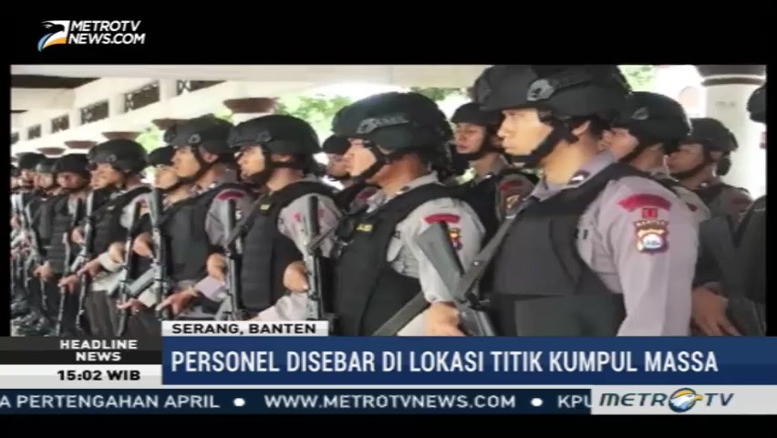 Ratusan personel Brimob dan Sabhara Polda Banten disiagakan di titik-titik kumpul massa di Serang, Banten. Hal tersebut dilakukan untuk mengantisipasi adanya pergerakan massa dari Banten ke Jakarta pada Pilkada DKI Jakarta putaran kedua.