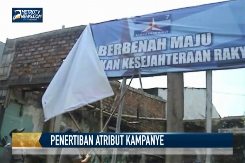 Metrotvnews.com, Sukabumi: Satpol PP Sukabumi menurunkan ratusan baliho di sejumlah titik zona merah di beberapa ruas jalan protokol Kota Sukabumi, Jawa Barat.