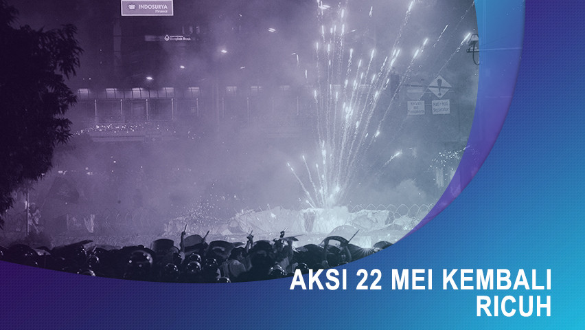 Massa di depan gedung Bawaslu kembali ricuh. Kondisi di sekitar Bawaslu pun dipenuhi asap karena massa melempari aparat dengan petasan dan kembang api. Massa juga melempari aparat dengan batu dan kayu. Namun aparat tetap bertahan meski dilempari massa. ANTARA FOTO/Indrianto Eko Suwarso. Cek Berita dan Artikel yang lain di Google News