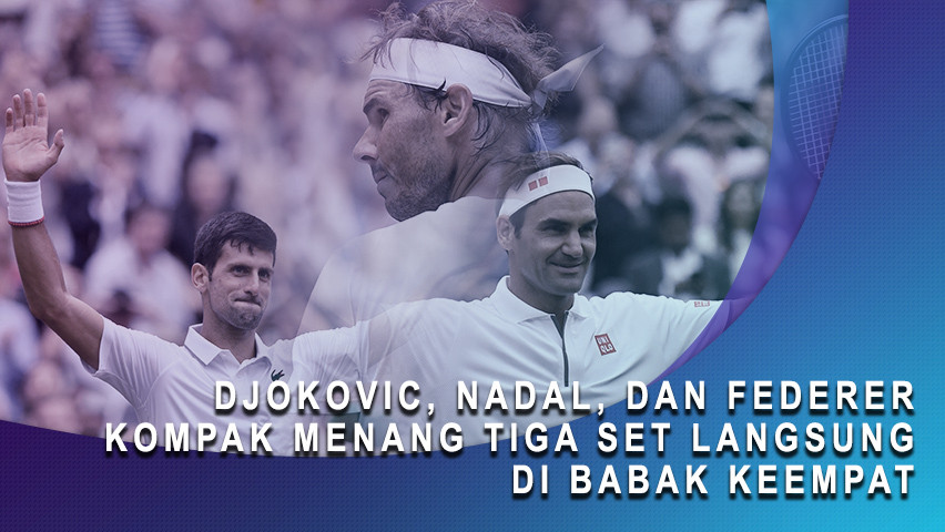 Rafael Nadal, Roger Federer, dan Novak Djokovic belum terbendung pada Wimbledon 2019. Ketiganya bahkan mampu melangkah ke babak perempat final sejauh ini. Afp/Ben Stansall/Glyn Kirk Cek Berita dan Artikel yang lain di Google News