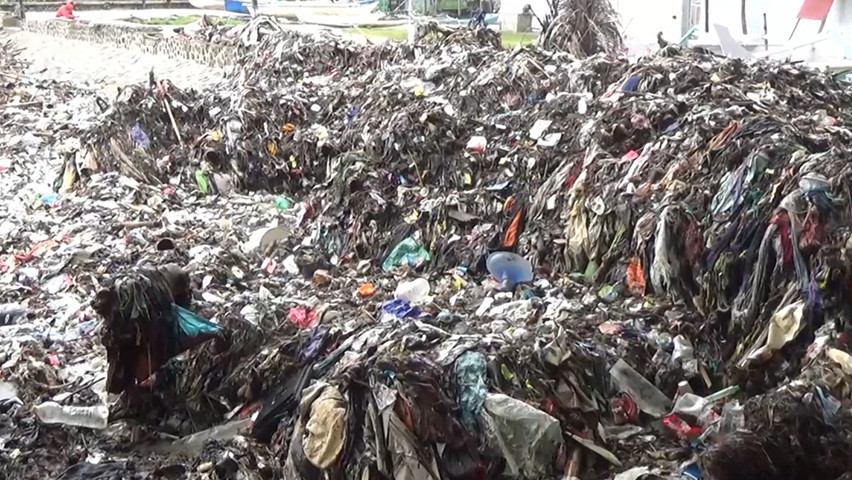 Tumpukan sampah ini jaraknya hanya beberapa meter dari Kantor Dinas Kelautan dan Perikanan setempat. Sampah didominasi oleh plastik, ranting kayu, dan rumah tangga.