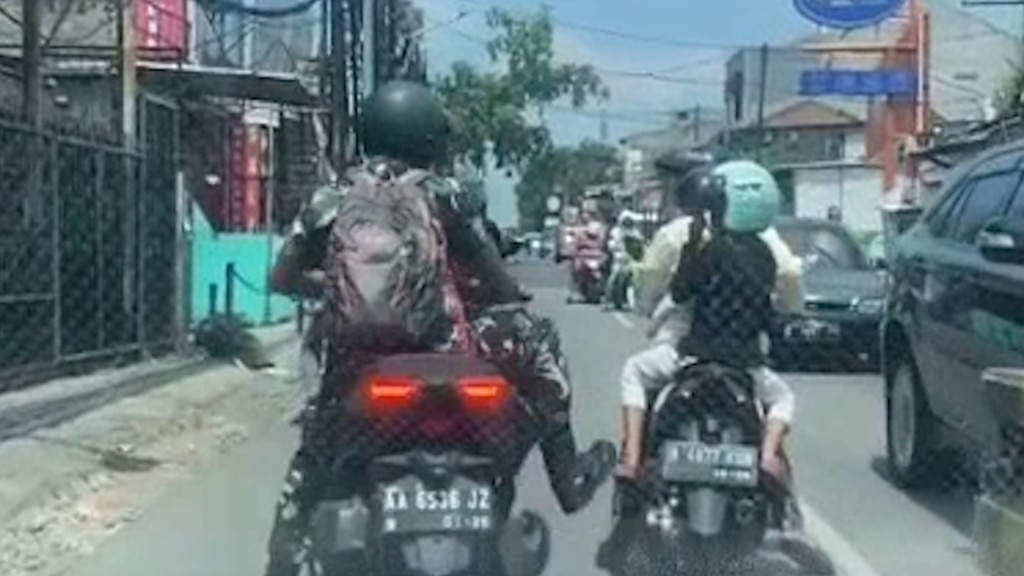 Dalam rekaman video yang viral, seorang prajurit TNI menendang motor yang dikendarai seorang ibu sembari membonceng anaknya. Peristiwa itu terjadi pada Senin, 24 April 2023 di Jalan Jatiwarna Bekasi, Jawa Barat.