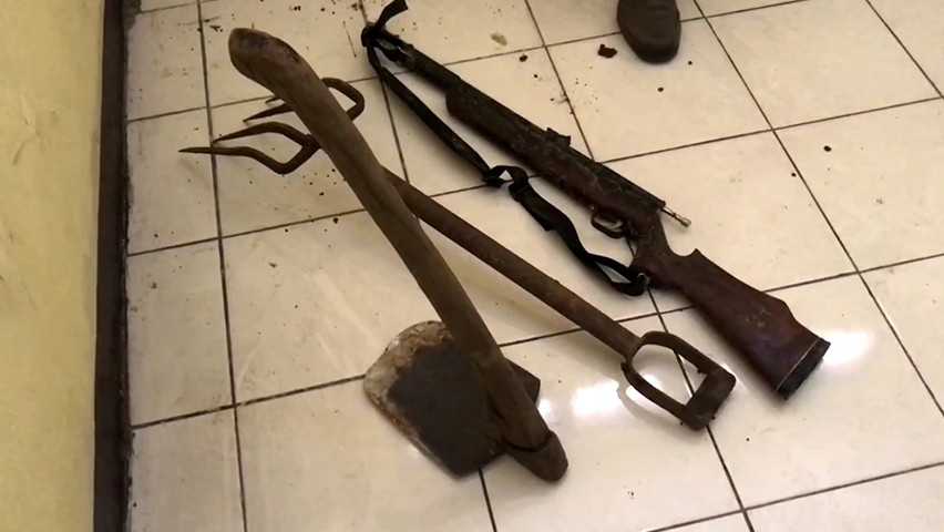 Pelaku kemudian diamankan kepolisian. Pelaku menganiaya korban dengan cangkul, garpu besi, dan senapan angin.