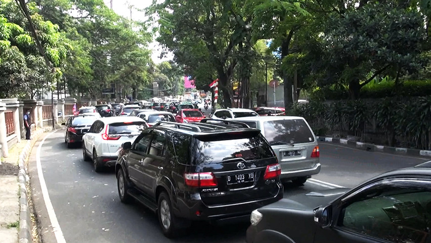 Kepadatan lalu lintas mulai terlihat di kawasan Setiabudi. Arus lalu lintas didominasi kendaraan pribadi asal Bandung.