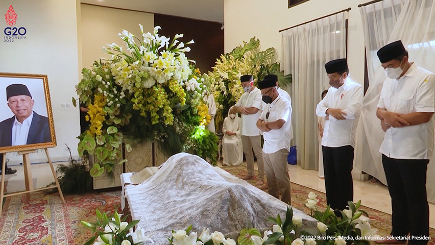 Presiden Joko Widodo melayat & memberi penghormatan pada jenazah pendiri Medco Energi Group sekaligus Anggota Dewan Pertimbangan Presiden, Arifin Panigoro di rumah duka di Cilandak, Jakarta. Sebelumnya almarhum meninggal di Amerika Serikat pada 27 Februari lalu. Jokowi tiba di rumah duka pukul 09.00 WIB disambut adik dan anak-anak Arifin Panigoro.