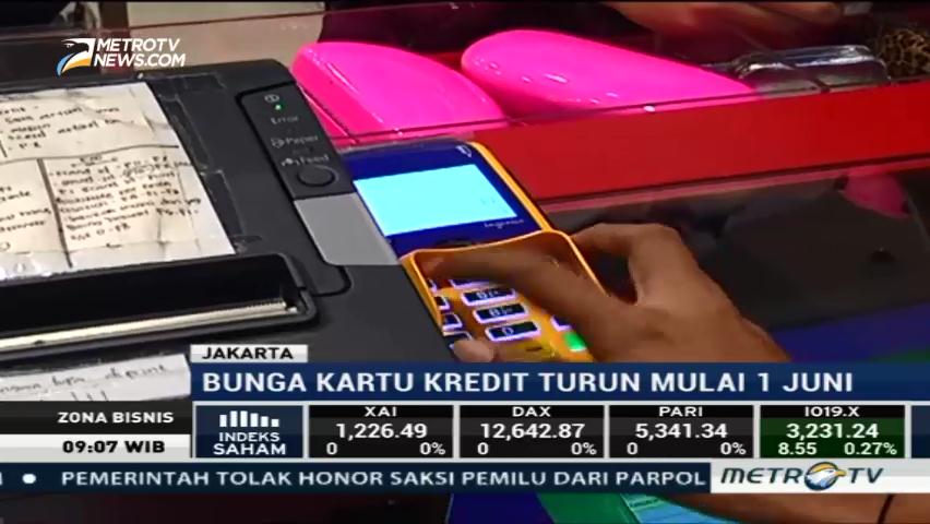 Bunga kartu kredit akan turun mulai 1 Juni mendatang. Penurunan bunga dinilai akan berdampak pada meningkatnya transaksi dan jumlah pengguna kartu kredit. Selain itu, konsumsi rumah tangga juga akan meningkat.